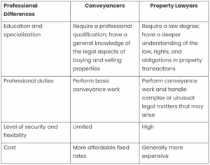 Let’s discuss these factors further in this section. But for a quick overview, here’s a table summarising the unique features of conveyancers and property lawyers.